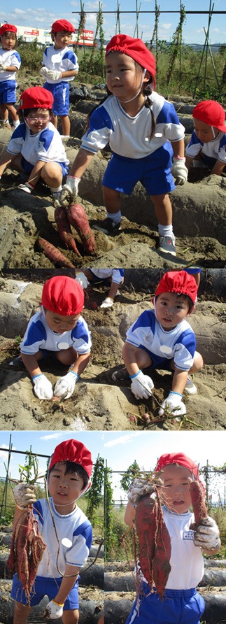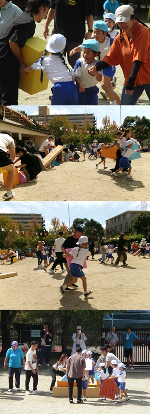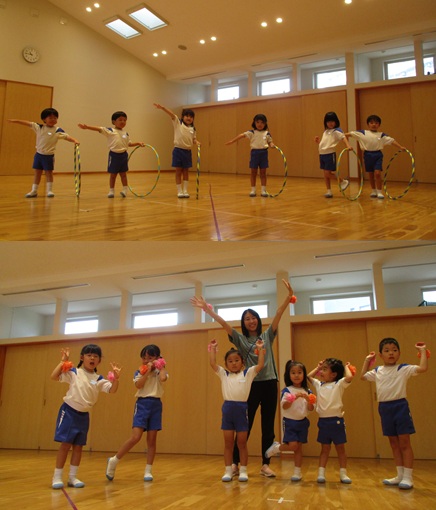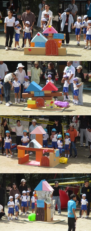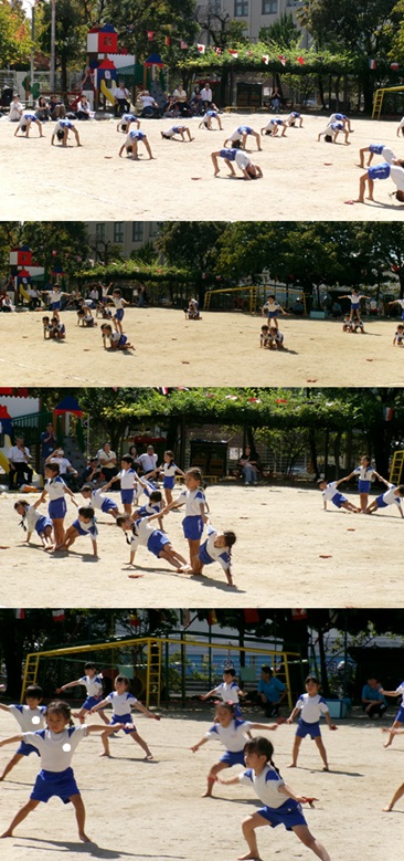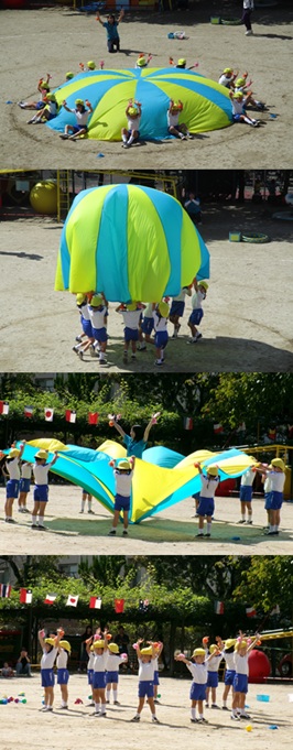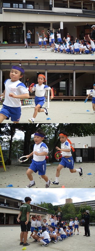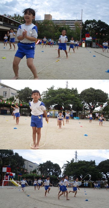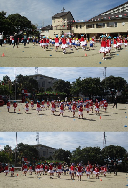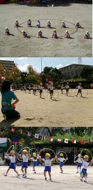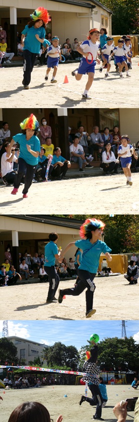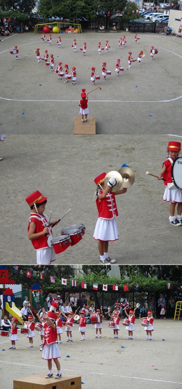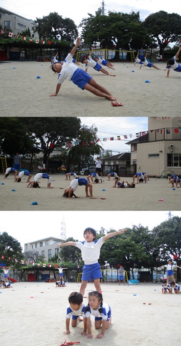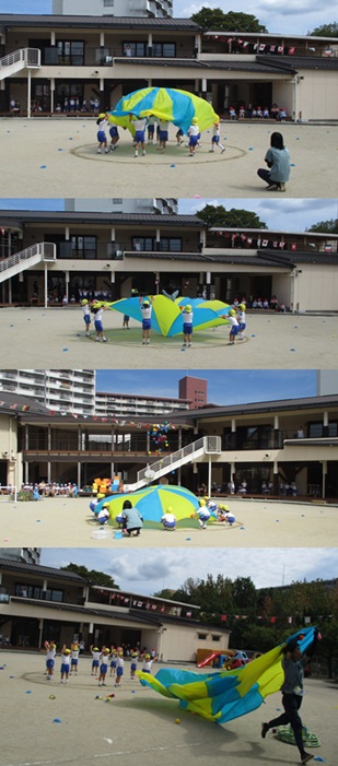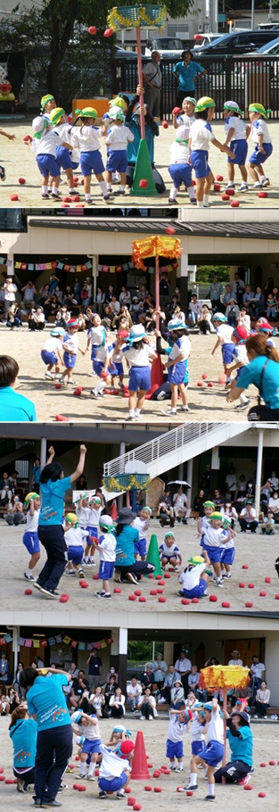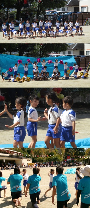 2度の延期を経て、待ちに待った運動会の開催。 統計史上最も暑い夏を配慮しながら進めてきました。 初めのうちは、友だちと走ったり、ダンスをしたりと楽しんでいた子どもたちも、どんどん運動会への期待を持つようになりました。4歳児、5歳児ともなると見通しをもち、自分の役割を果たして友だちと協力してやり遂げようとする場面も沢山見受けられ嬉しく思いました。 今では運動会を再現し、園庭はいつも賑やかです。 |