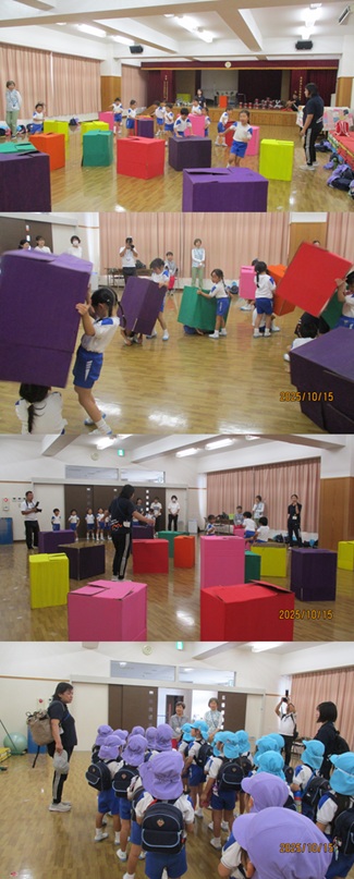 架け橋プログラムとして年長児かご招待していただいた向島秀蓮小中学校へ出向く日です。 |