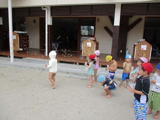 キラキラの暑い日は、プールあそびや水でっぽうにシャボン玉。 |