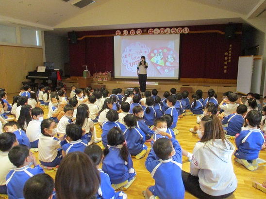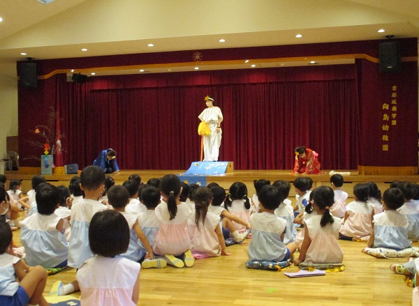 7月7日には『七夕ものがたり』の劇を先生たちが演じ、織姫様や彦星様のこと、又夜空のことなどにより関心を持ったのではないでしょうか。 |