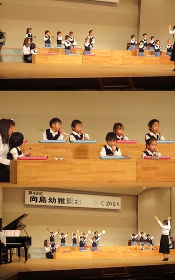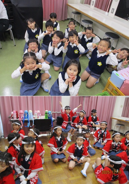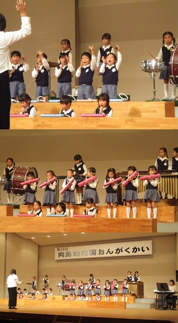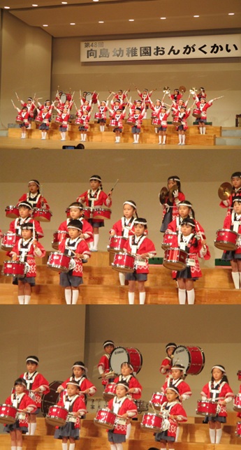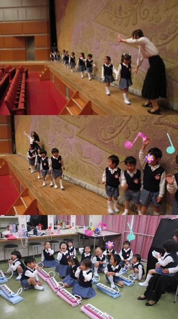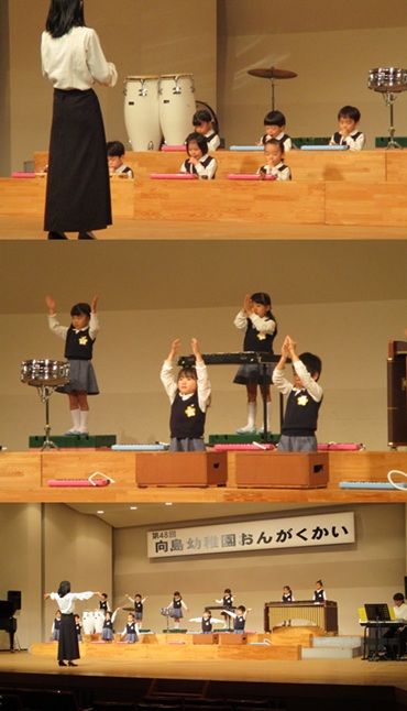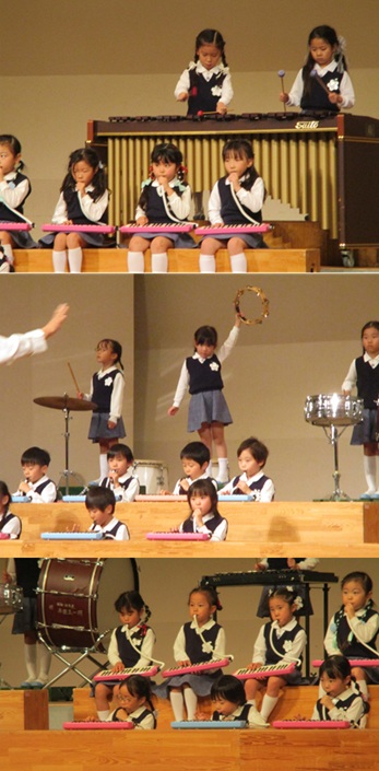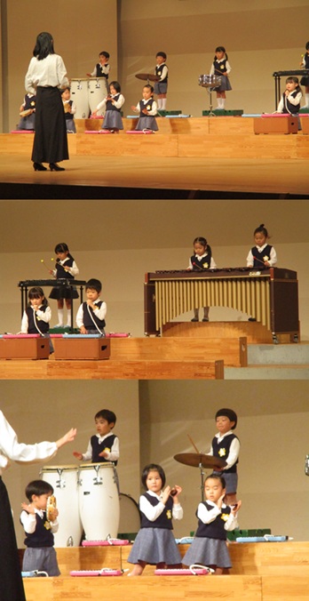 3歳児は「カルメン組曲」、4歳児は「パイレーツ オブ カリビアン」、5歳児は「情熱大陸」、どの曲も大曲ですが、日々、担任の先生と小さなステップをコツコツ踏み、当日を迎えました。 |