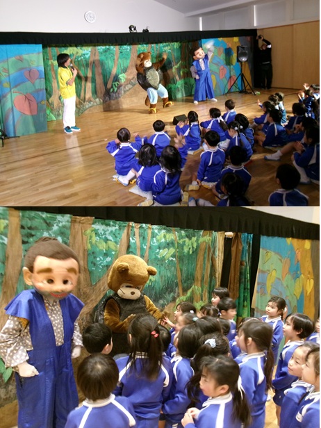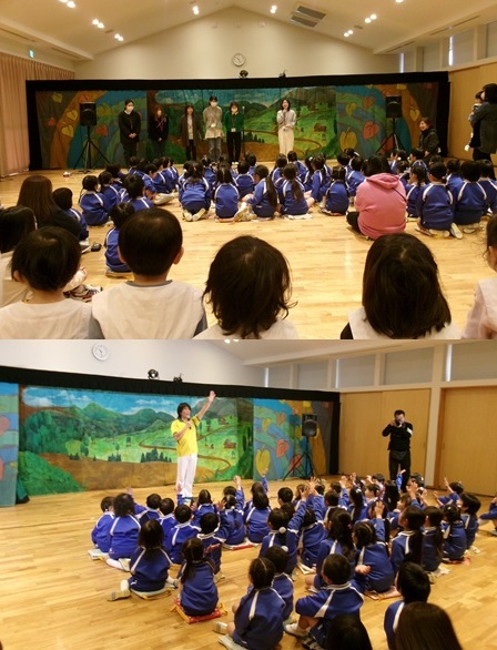 幼稚園に劇団バクのチーム『メルヘン王国』さんが来てくださいました。 |